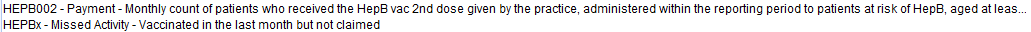 Additional "Missed Activity" searches are provided to highlight additional patients who have not already been counted by the CQRS count. They are identified by the prefix HEPBx.
