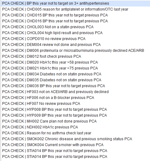 Patients aged 80+ not to BP target with a previous PCA recorded within the last 3 years. Useful for reviewing reapplication of PCA if clinical circumstances haven’t changed.
