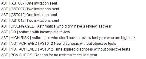 These searches supports practices in identifying asthma-related QOF work that can be actioned either during the year or as part of a structured year-end review. The searches are grouped to help you track invitations, incomplete reviews, missed opportunities, and patients who may need Personalised Care Adjustment (PCA) coding.