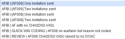 AF patients who have received one invitation to discuss anticoagulation. Sending a second invitation will allow these patients to be exception-reported if they do not attend.