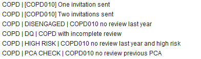 COPD patients who have received one invitation for an annual review. A second invitation is needed to support exception reporting if the patient does not attend.