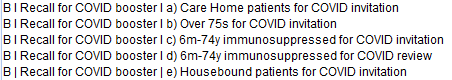 The Spring booster campaign includes patients aged 6 months to 74 years who are immunocompromised. A limitation of reference sets (code clusters) used is that some codes do not qualify for a vaccination, although effort has been put into eliminating as many of these as possible.
