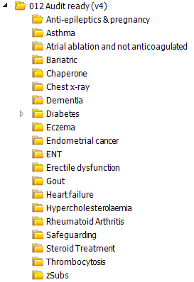 Below are the population reporting (search) folders which you will find in your practice (if you are a subscriber to this product) under the Audit ready heading search folder. Click the links below to go to the support articles which will help you understand and work through these searches and reports.