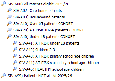 SIV-Q00: Three searches identify patients who have been vaccinated by the surgery using one of the 4 primary vaccination codes. This search has been improved for 25/26 by ignoring patients who had a vaccination at a previous surgery before registering with the current surgery. The search and its children, which subdivide activity into injection and nasal spray, may be used as a rough guide as to how many vaccinations of each type have been administered.
