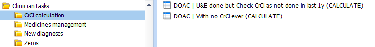 - For patients in these searches, they require a Creatinine Clearance calculating. The report will show you the latest DOAC and eGFR, or the latest CrCl with the patient's weight.
