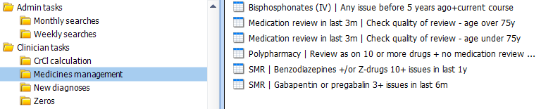 - There is a report for overdue (5+ years) for review for patients on oral bisphosphonates. These are in the Zeroes folder. There is also one for almost overdue (4.5+ years) in the Admin Tasks>Monthly.