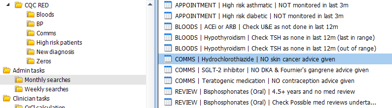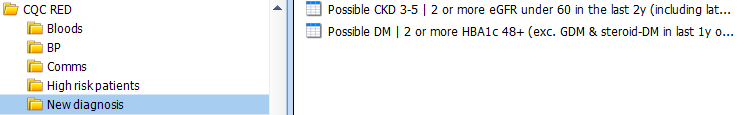 - APPOINTMENT searches are those patients that require a review, as outlined above in the CQC RED>High risk patients folder above