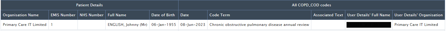 The report will output every code found in the COPD_COD reference set (the codes used for the QOF register).