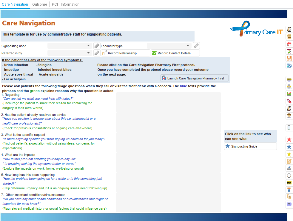 - Enables safe navigation of patients to the "Pharmacy First" service using the embedded Care Navigation Pharmacy First protocol.