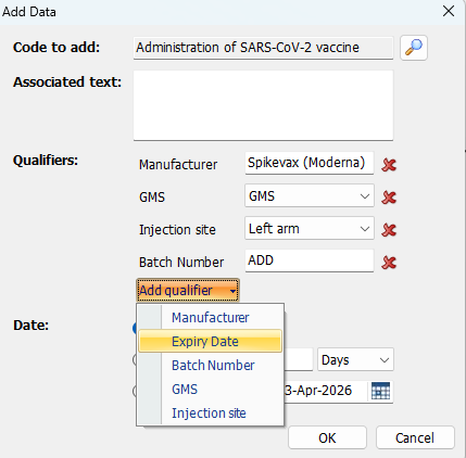 8. Click on Add Qualifier and add Expiry Date as a field then enter the Expiry Date of your batch.
