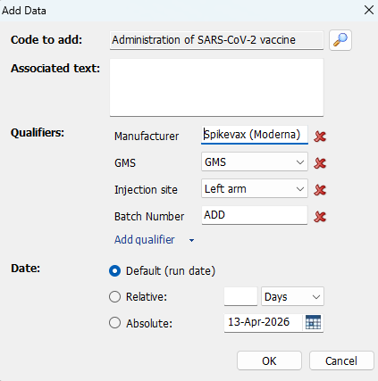 This means that EMIS will prompt users to add a prescription for the vaccine given once the code has been added. Optum have advised that this protocol is required by NHS England but there is no information at this time about how the data is being used or what issues may be cause if the practice does not enter this information. Unfortunately, as this is a personally administered item, this also includes fields for batch number and expiry date which is not auto-filled from the protocol.