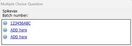 11. If more than one batch number is in use at the same time, follow the lines from the second choice in the MCQ to the next pair of Add Coded Data nodes