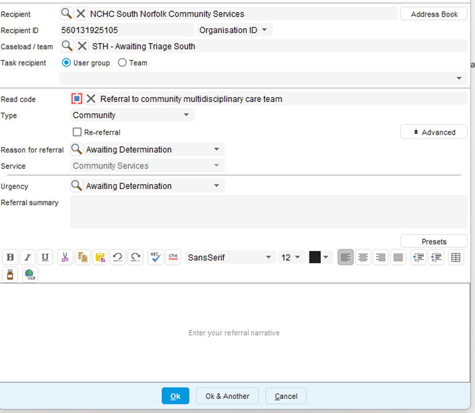 This protocol has been developed to enable staff to send electronic referrals directly to the appropriate District Nursing team within a patient’s GP practice area. The system automatically identifies the surgery’s location and launches the correct referral form, ensuring referrals are directed to the right team without the need for manual searching.