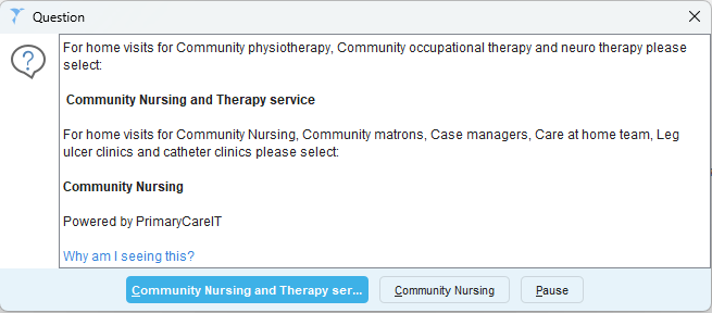 - The user will be given a choice to select which community team to send the referral to based on the service the patient requires.