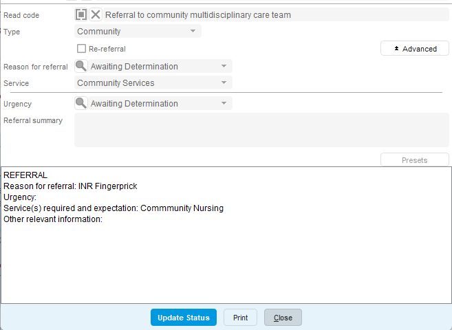 Send referrals to the correct community nursing team for patients who are housebound or unable to attend appointments at the surgery.