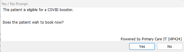 If the patient is eligible the message will ask if an appointment is being made and choosing yes will launch an appointment booking screen.
