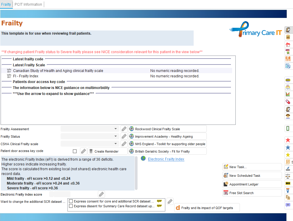 If the user clicks on the alert it will then take them to our frailty template where the patients information can be updated: