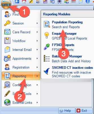 If you can't see the reporting or population reporting option, you don't have the correct permissions and will need to contact your systems administrator.