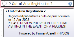 To flag to staff where a patient is coded as living outside of the Practice's catchment area.