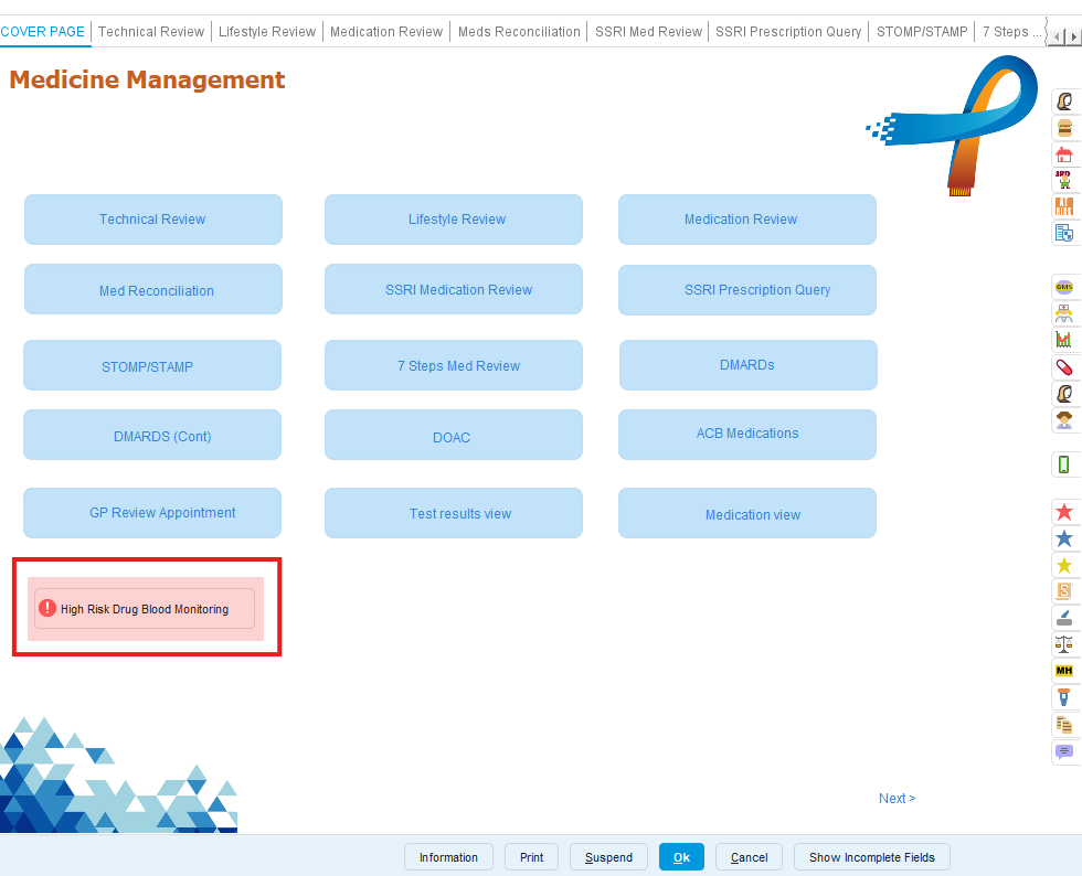 If users wish to go straight to the High Risk Drug Monitoring OneTemplate, please use the F12 and search 'High Risk Drug Monitoring'