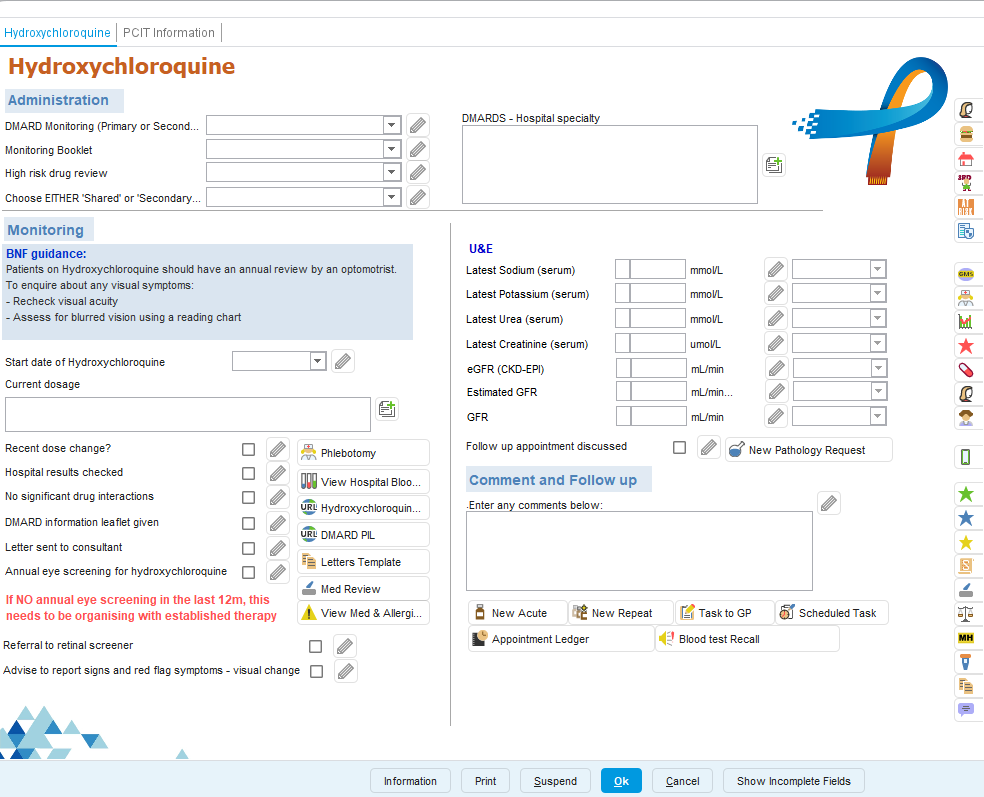 High-risk drug monitoring templates have been designed to support safe and consistent monitoring for patients prescribed medicines that require regular review and blood test surveillance.
