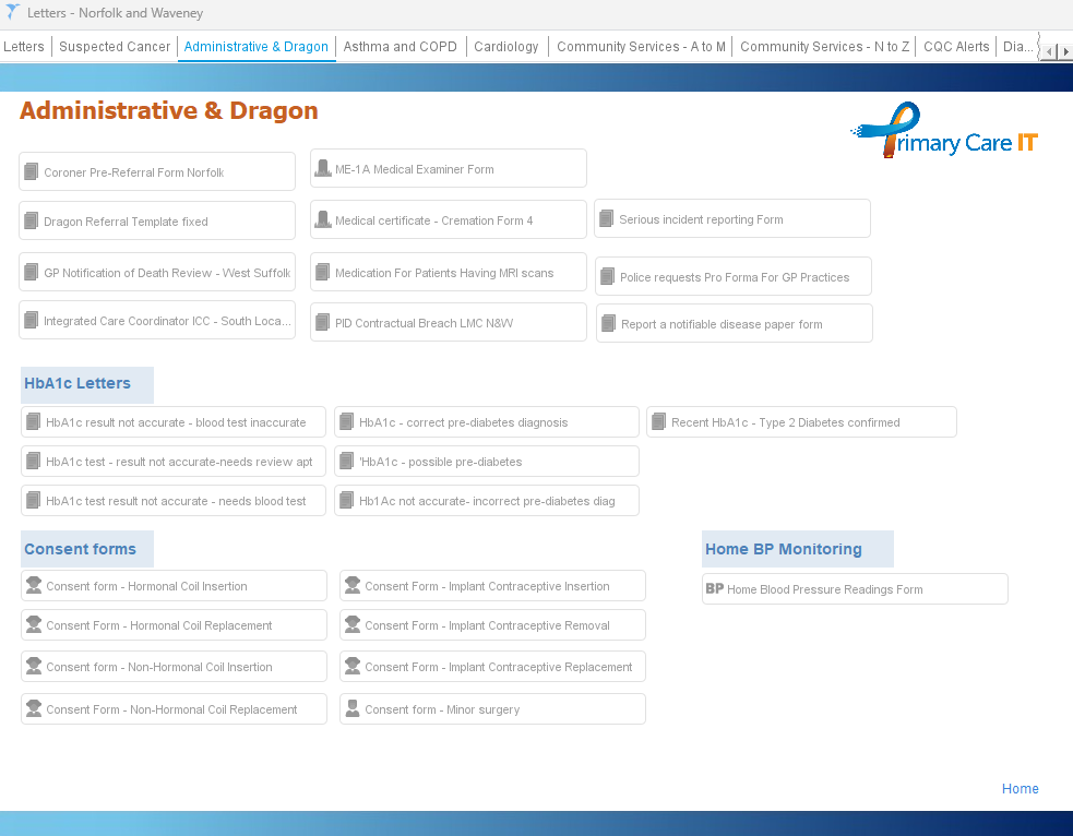 Administrative & Dragon | Administrative & Dragon (Main Forms) · Coroner Pre-Referral Form Norfolk · Dragon Referral Template fixed · GP Notification of Death Review – West Suffolk · Integrated Care Coordinator ICC – South Locality · ME-1A Medical Examiner Form · Medical certificate – Cremation Form 4 · Serious incident reporting Form · Medication For Patients Having MRI scans · Police requests Pro Forma For GP Practices · PID Contractual Breach LMC N&W · Report a notifiable disease paper form