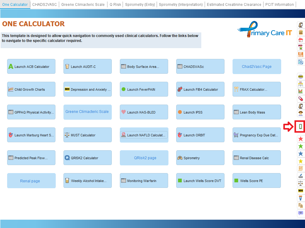 3. The clinical calculator is also accessible from the side toolbar, available across all PCIT clinical templates. This offers rapid access to key calculators during consultations